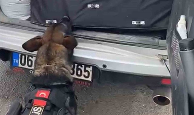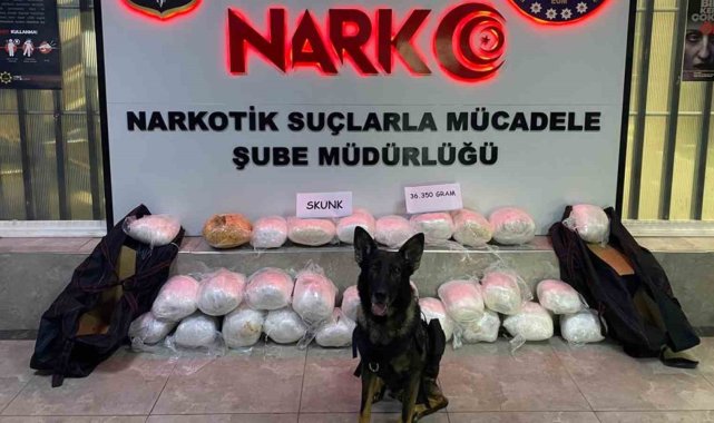 43 ilin geçiş güzergahı Kırıkkale'de narkotik köpeği ile denetim yapan polis, şüphe üzerine durdurduğu bir aracın bagajındaki koliden 36 kilogram "skunk" maddesi ele geçirdi.