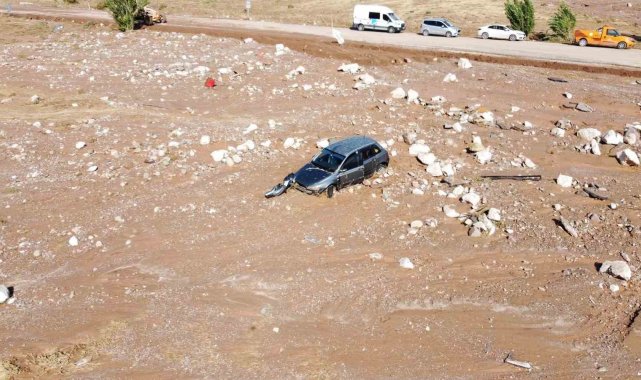 Aksaray'da dün gece yaşanan sel felaketinin ardından afetin açtığı zararlar gün ağarınca ortaya çıktı. Havadan dron ile görüntülenen bölgede kayıp olan bebeğin arama çalışmaları halen devam ederken, 1 kişinin yaşamını yitirdiği olayda zarar tespit çalışmaları da halen devam ediyor. 2 çocuk annesi kadının hayatını kaybettiği, 3 aylık bebeğin halen kayıp olduğu olayla ilgili İl Afet Acil Durum (AFAD) başta olmak üzere Ulusal Medikal Kurtarma (UMKE), itfaiye, jandarma, polis ve birçok kurum personeli arama çalışması yapıyor.