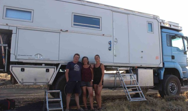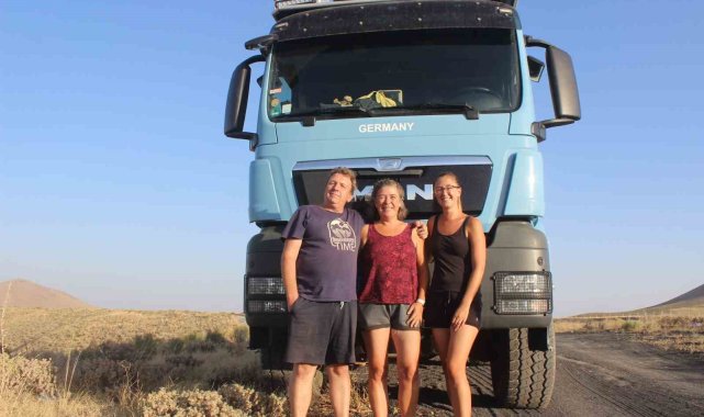 Karavanları ile dünya turuna çıkan Alman aile, Konya'nın Karapınar ilçesinde mola vererek Meke Gölü'nde dinlendi.