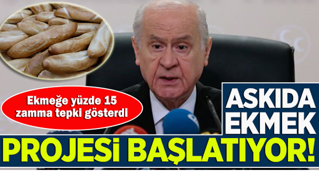 MHP Genel Başkanı Devlet Bahçeli ekmeğe yapılan zamma tepki göstererek, 'Askıda ekmek projesini başlatıyorum' dedi. Gazetecilerin, “Talimat verdiniz mi” sorusunu da MHP Lideri, “Gerekli talimatları veriyoruz. Çalışmaları ve girişimleri başlatıyoruz” diye yanıtladı.