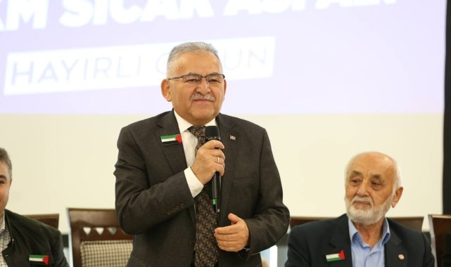 "Ekonomisiyle, ticaretiyle, sanayisiyle gerçekten ülke ekonomisine en çok desteği veren, gururumuz olan bir şehrimiz. Sizler gibi fedakâr insanlar, imkânları olup hayırseverlikle imzasını atan gururumuz olan Kayseri'mizin güzel insanları. Bu anlayış içerisinde bu şehri daha güzele, daha iyiye taşımak amacıyla gayret gösteriyoruz. Herkesin bir emeği var. Herkesin çaktığı bir çivi var. Bizim gecemiz gündüzümüz yok. 16 ilçemizle birlikte taşrasıyla merkeziyle el ele gönül gönüle vererek, çalıştık. Hiçbir dönem, bu dönemdeki gibi taşraya yatırım yapılmamış. Nerede bir sıkıntı varsa, orada Büyükşehir Belediyesi var."