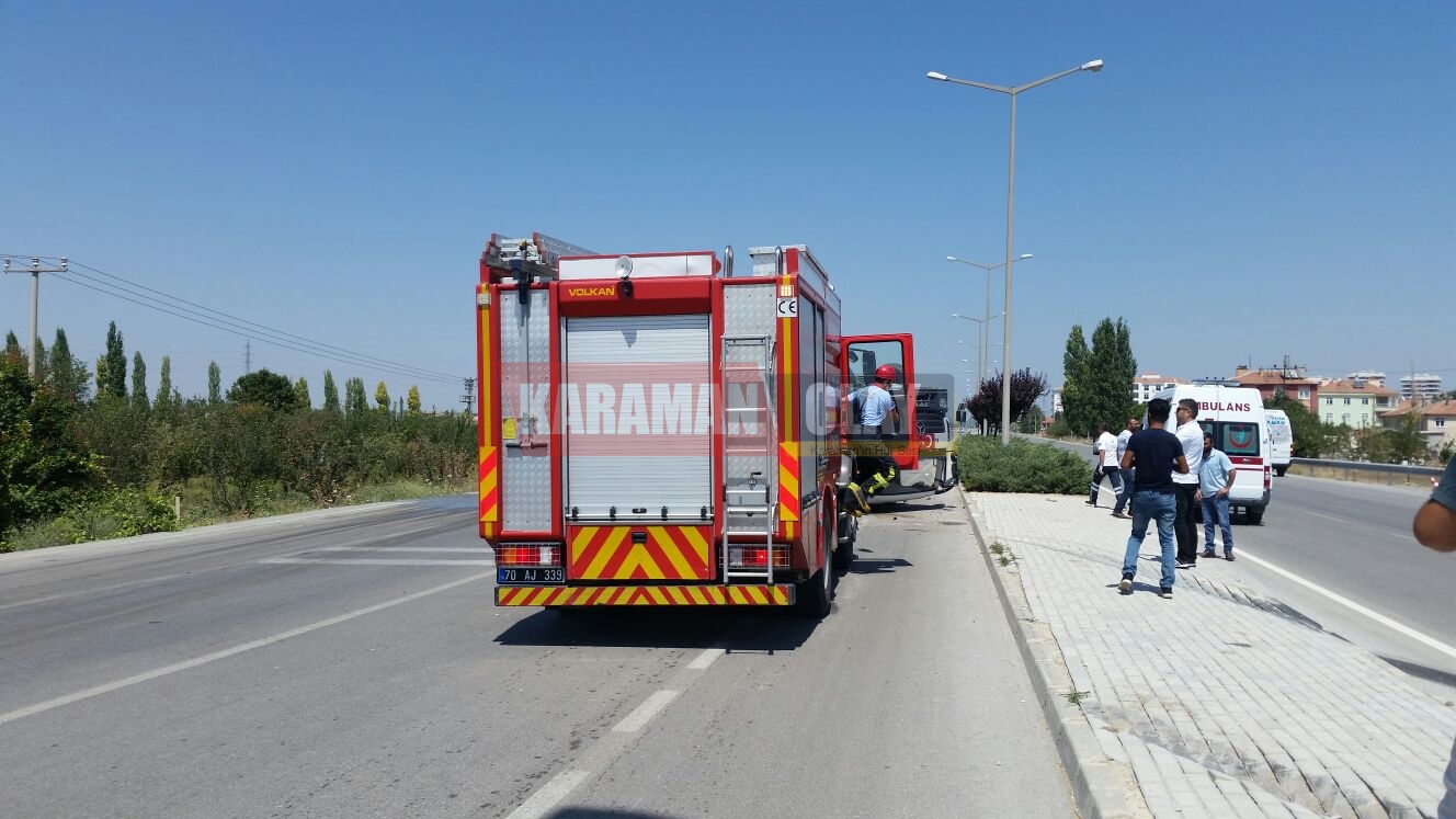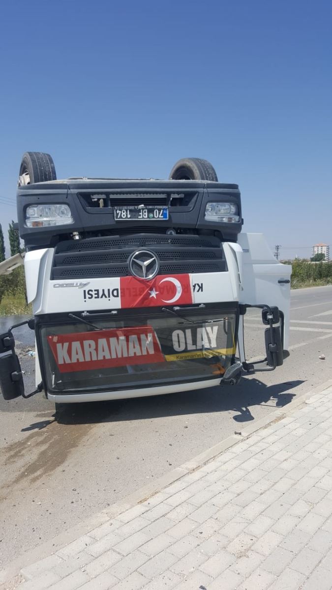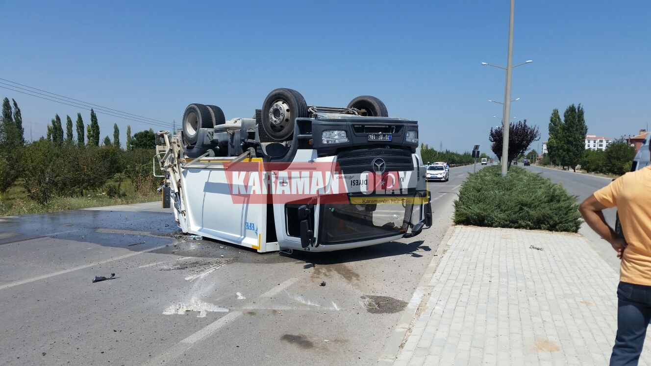 Edinilen bilgiye göre; Karaman mut yolu, ceza evi kavşağında Karaman Belediyesine ait çöp aracı ile otomobil kaza yaptı. Çarpmanın etkisi ile belediye aracı takla attı ve ana yol üzerine devrildi. Otomobil ise kullanılamaz hale geldi. Kazada 2 kişi yaralandı. Kazayı gören vatandaşlar durumu hemen sağlık ekiplerine ve polise bildirdi. Yaralılar ise Karaman devlet hastanesinde kaldırıldı.