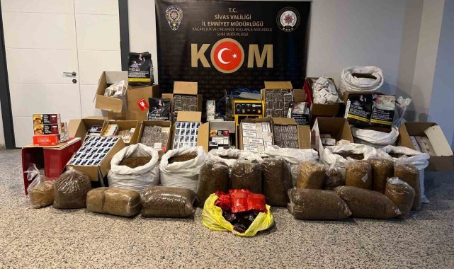 Sivas İl Emniyet Müdürlüğü Kaçakçılık ve Organize Suçlarla Mücadele Şube Müdürlüğü ekiplerince, kaçakçılık olaylarını engellemek amacıyla operasyon düzenlendi. Sivas Cumhuriyet Başsavcılığı koordinesinde yürütülen operasyonlarda; bir iş yeri ve eklentilerinde ve iki depo mahiyetinde arama yapıldı. Yapılan aramalarda; 128 bin 600 adet içi tütünle doldurulmuş makaron (sigara), 232 kilogram açık kıyılmış tütün, 25 bin 400 adet boş makaron, 18,5 kilogram açık nargile tütünü, 7 kilogram paketlenmiş TAPDK bandrlolsüz tütün, 8 adet mükerrer TAPDK bandrolü ve 1 adet elektrikli ve kompresörlü sigara sarma makinesi ele geçirildi. Olayla ilişkin bir şahsa 5607 sayılı Kaçakçılıkla Mücadele Kanununa Muhalefet suçundan yasal işlem yapıldı.