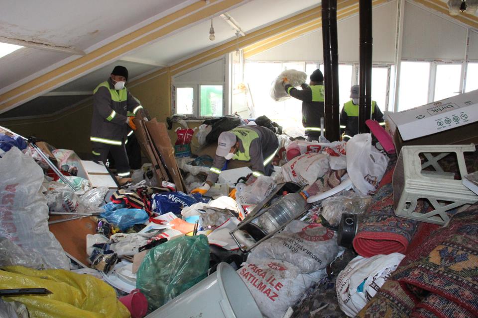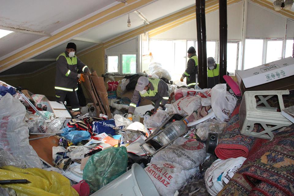 Karaman Belediye temizlik ekipleri, dairedeki çöpleri temizlemek için polisinde yardımıyla caddeyi trafiğe kapattı. Daireye çıkan temizlik ekibi, dairedeki çöpleri temizlemeye başladı. Şuana kadar apartmanın sadece teras katından 5 kamyon çöp çıkarken, daire ile birlikte 30 kamyona yakın çöp çıkması bekleniyor.