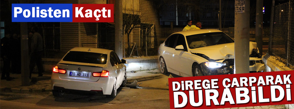 Kaza, saat 22.45 sıralarında Nefise Sultan Mahallesi 232’nci sokak girişinde meydana geldi. Alınan bilgiye göre, henüz sürücüsünün ismi öğrenilemeyen, 70 HD 333 plakalı otomobil, sokağa dönüş yaptığı esnada, kontrolünü kaybederek kaldırımdaki beton elektrik direğine çarptı. Kazada araç sürücüsüne bir şey olmazken, otomobilde büyük çapta maddi hasar oluştu. Polis, kaza yapan aracı çekici ile otoparka çektirirken, sürücüsünü de kimlik tespiti için polis merkezine götürdü.