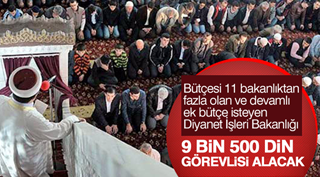 Diyanet İşleri Başkanlığına din görevlisi alımı yapacaklarını ifade eden Başkan Erbaş, “Bu yılın sonuna doğru 9 bin 500 kişi alacağız. Bunların 6 bini İmam Hatip, 3 bini Kur’an kursu öğretmeni, 500’ü ise müezzin kayyum olacak. Bu yılın sonuna doğru sınav yapacağız. İlahiyat fakültesi, İlahiyat ön lisans, imam hatip liselerinden mezun olmuş arkadaşlarımıza bir fırsat tanımış olacağız.
