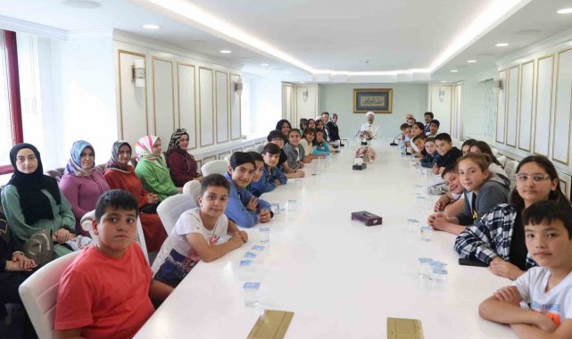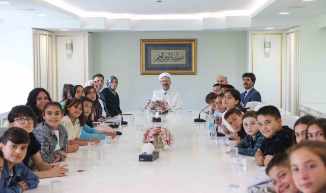 Aksaray Piri Mehmet Paşa Ortaokulu öğrencileri, öğretmen ve velilerinden oluşan 38 kişilik bir grubu Başkanlık Toplantı Salonu'nda kabul eden Diyanet İşleri Başkanı Erbaş, öğrencilerle bir süre sohbet etti.