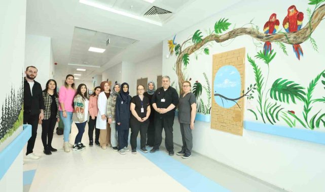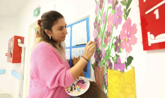 Kahramankazan Belediyesi bünyesinde faaliyet gösteren Alparslan Türkeş Mahalle Kültür Evi'nin kursiyerleri, Kahramankazan Devlet Hastanesi palyatif bölümünde yatan hastalar için duvarları resimlerle süsledi.