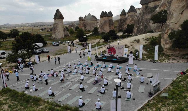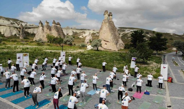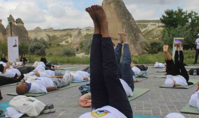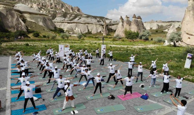 Hindistan'ın Ankara Büyükelçisi Virander Paul, "Dünya Yoga Günü" etkinlikleri çerçevesinde beraberindeki heyetle Nevşehir'in Avanos ilçesine bağlı Başabağları ören yerinde bulunan peribacaları arasında eğitmenler tarafından yönetilen yoga seansına katıldı.