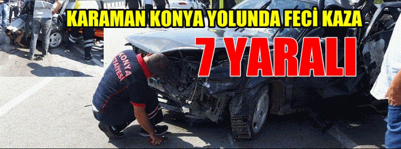 Karaman-Konya Karayolunda iki otomobilin çarpışması sonucu 2'si ağır 7 kişi yaralandı.