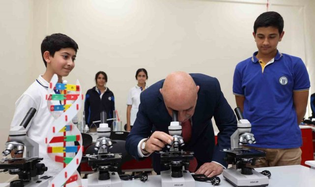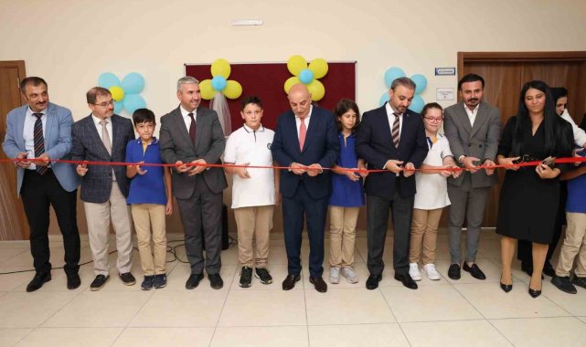 Altınok, katılımcılarla ve öğrencilerle birlikte kütüphane ve laboratuvar sınıfının açılışını yaparak incelemelerde bulundu.