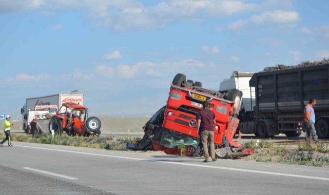 Kaza, Konya Adana Kara yolu üzeri Karapınar ilçesi Akören Mahallesi Ötügen mevkiinde meydana geldi. Edinilen bilgiye göre, T.T. idaresindeki 42 AIT 058 plakalı Mercedes marka tır, sürücüsünün direksiyon hakimiyetini kaybetmesi sonucu kontrolden çıkarak refüje devrildi. Kazada tırın sürücüsü yaralanırken yüklü olan traktörler yola ve şarampole savruldu. Traktörlerde maddi hasar meydana geldi. İhbar üzerine kaza yerine sağlık ve polis ekipleri sevk edildi. Yaralı sürücü ilk müdahalesinin ardından ambulansla Karapınar Devlet Hastanesi'ne hastanesine kaldırıldı. Kara yolu bir süre araç trafiğine kapanırken, araçlar tarla yollarından ve karayolundan kontrollü olarak gönderildi.