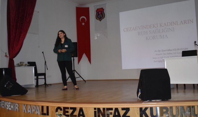 Nevşehir E Tipi Kapalı Ceza İnfaz Kurumu'nda, Nevşehir Hacı Bektaş Veli Üniversitesi Kadın Çalışmaları Uygulama ve Araştırma Merkezi (NÜKÇAM) iş birliğiyle hükümlü ve tutuklu kadınlara yönelik "Kadınların Ruh Sağlığının Korunması" konulu konferans düzenlendi.