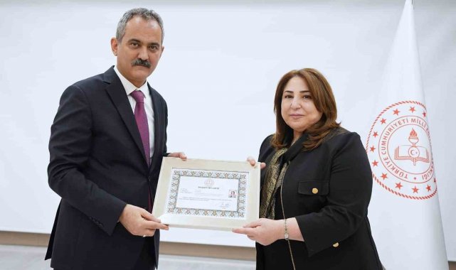 Eskişehir İl Milli Eğitim Müdürü Pervin Töre, Milli Eğitim Bakanı Mahmur Özer'in elinden başarı belgesi aldı.