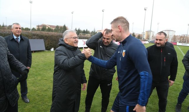 Kayseri Büyükşehir Belediye Başkanı Memduh Büyükkılıç, kentin en önemli markalarından biri olan Kayserispor'u 20 Aralık'ta oynanacak Fenerbahçe maçı öncesi ziyaret ederek, futbolcularla ve teknik ekiple bir araya geldi. Burada yaptığı açıklamada Kayserispor'un taraftarı, yönetimi, oyuncusu, hocası ve destekleyen dostlarıyla destan yazmaya devam edeceğine inandığını ifade eden Başkan Büyükkılıç, "Şehrimizin en önemli markalarından biri olan Kayserispor'umuzun antrenmanına geldik. Değerli Recep hocamızı ve değerli yönetim kurulu başkanımızla birlikte ziyaret ettik. Dualarımız onlarla, göğsümüzü kabartıyorlar. Taraftarıyla ve yönetimiyle, oyuncusuyla, hocasıyla destekleyen dostlarla adeta Kayseri'miz Cenabı Allah'ın lütfu hocamızın ve oyuncularımızın gayretiyle inşallah destan yazmaya devam edecek diye inanıyorum. Allah mahcup etmesin, nazarlardan korusun, kaza bela vermesin. Başarılar diliyorum" ifadelerini kullandı.