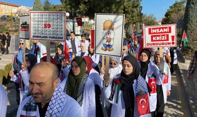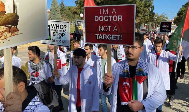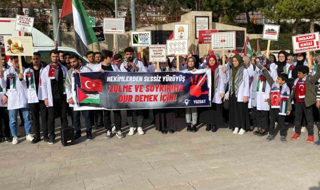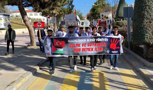 Yozgat terminal mevkiinden bir araya gelen hekimler ve tıp fakültesi öğrencileri, İsrail'in Gazze'de sivillerin bulunduğu hastaneleri bombalamasını protesto etti. Türkiye ve Filistin bayrakları taşıyan öğrenciler, hastanelerin morga dönüşmesine tepki göstererek İsrail'i kınadı. Sessiz yürüyüş Yozgat Cumhuriyet Meydanı'nda son buldu.