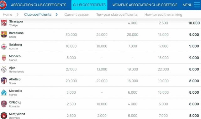 DG Sivasspor, 2022-2023 sezonunda Avrupa kupalarında gösterdiği başarılı performansla bu sezon toplanan puanlarda Barcelona, Ajax, Atletico Madrid ve Marsilya gibi kulüpleri geçti.