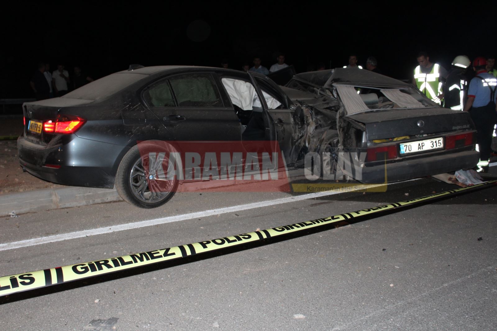 Alınan bilgiye göre, Mehmet Aksoy (27) yönetimindeki 70 AP 315 plakalı otomobil ile Bilal Üstünel (29) idaresindeki 41-TPZ-5 Hollanda plakalı otomobil kavşakta çarpıştı. Kazada 70 AP 315 plakalı otomobilin sürücü Mehmet Aksoy ile yanında bulunan Emine Kayserli (28), kaza yerinde hayatını kaybetti.