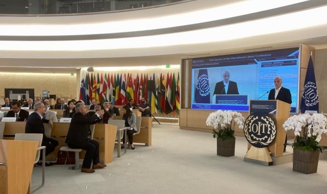 TÜRK-İŞ Genel Başkanı Ergün Atalay, Uluslararası Çalışma Örgütünün (ILO), İsviçre'nin Cenevre kentinde devam eden 111'inci Uluslararası Çalışma Konferansı'nda, Türkiye'nin işçi delegesi olarak Genel Kurul'a hitap etti.