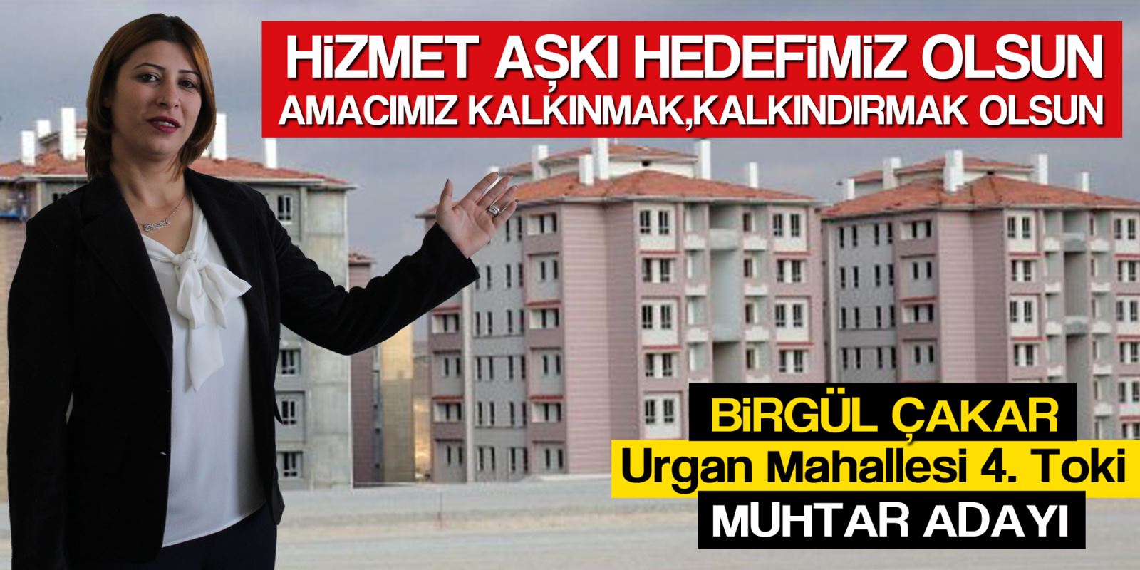 Evli ve 2 çocuk annesi olan Çakar, 15 yıldır urgan mahallesinde yaşamaktayım ve mahallemin sorunlarını yakından biliyorum. Çözüm odaklı projeler ile aday oldum. Dedi. Urgan mahallesi 4. Toki muhtar adayı Birgül Çakar Projelerini ise şu şekilde sıraladı.