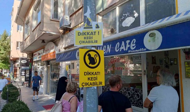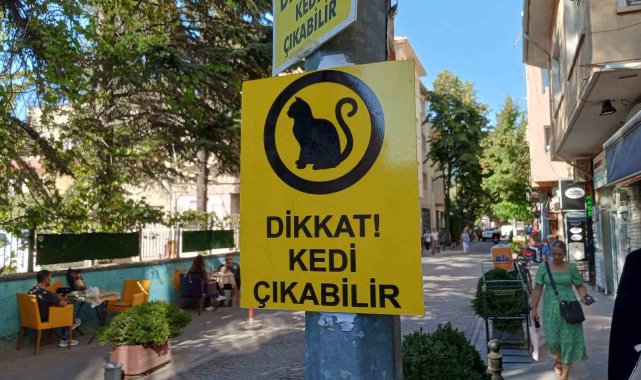 Odunpazarı İlçesi İstiklal Mahallesi Santral Sokak'taki bir esnaf, sürekli yaşanan hayvan kazaları sebebiyle bir ışık direğine internetten sipariş ettiği "Dikkat Kedi Çıkabilir" yazılı uyarı levhasını yapıştırarak tedbir almak istedi. İlginç levha sokağın başından itibaren gözlere çarparken, kimliği belirsiz şahıs veya şahıslar malzemesi plastik olan tabelayı yırtarak yerinden söktü. Astığı levhaların zarar gördüğünü fark eden esnaf ise aynı üründen tekrardan sipariş ederek direğe yeni uyarılar yapıştırdı. Olay sonrasında kamerasını birkaç gün boyunca uyarı levhalarının bulunduğu direğe doğrulttuğunu belirten esnaf, 2 defa aynı durumla karşılaştığını aktardı.